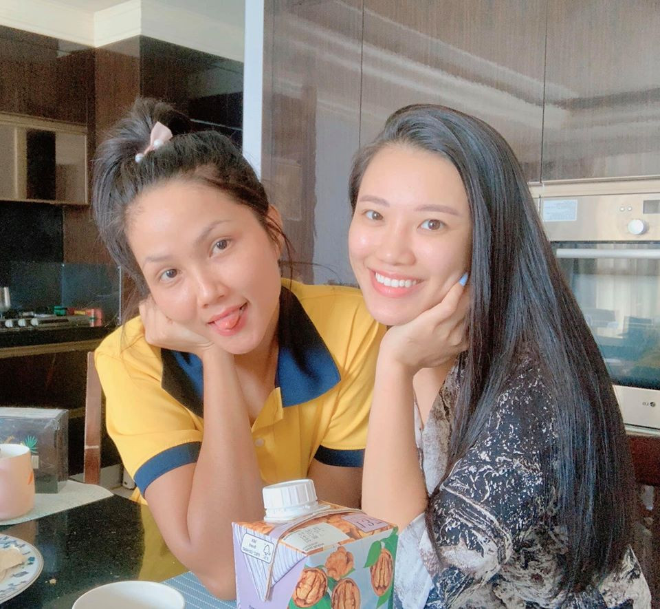 Á hậu Kim Duyên hào hứng khi được Hoa hậu H'Hen Niê tới thăm.