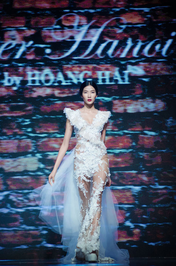 Tối 30/3, Hồng Quế làm vedette trong show diễn Aimer Hanoi (Yêu Hà Nội), đánh dấu 18 năm làm nghề của Nhà thiết kế Hoàng Hải.