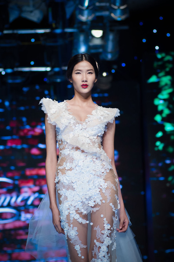 Tuy hình thể siêu gày nhưng nữ người mẫu vẫn tự tin diện thiết kế xuyên thấu khoe tối đa cơ thể.