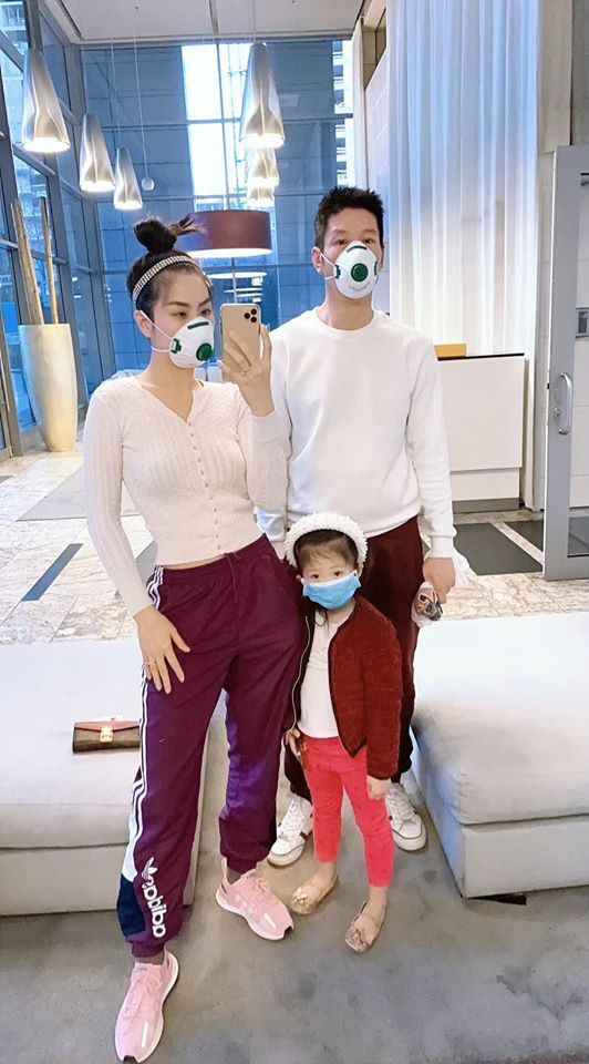 Gia đình Á hậu Diễm Trang đeo khẩu trang để bảo vệ sức khoẻ tại Ba Lan.
