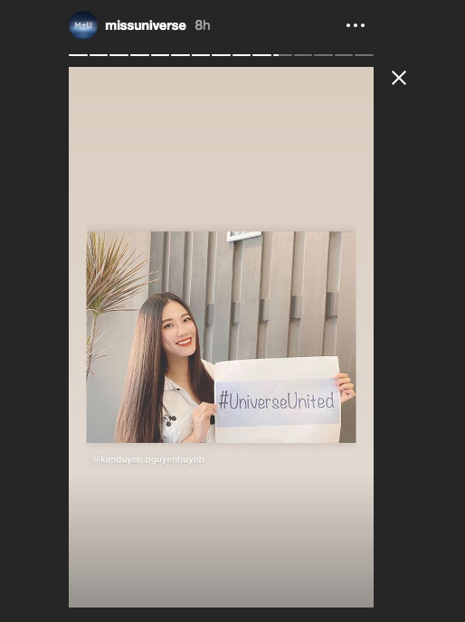 Đặc biệt, trang chủ của Miss Universe cũng đăng tải hình ảnh Á hậu Kim Duyên hưởng ứng phong trào #UniverseUnited.