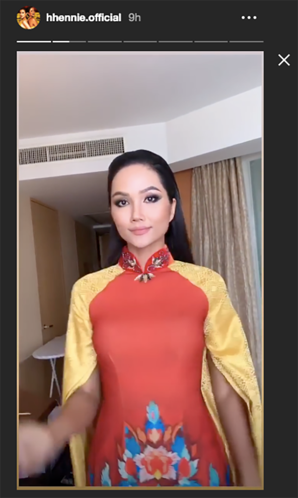 Trong khi đó Hoa hậu H'Hen Niê lại dịu dàng và nền nã với áo dài truyền thống trên đất Thái Lan.
