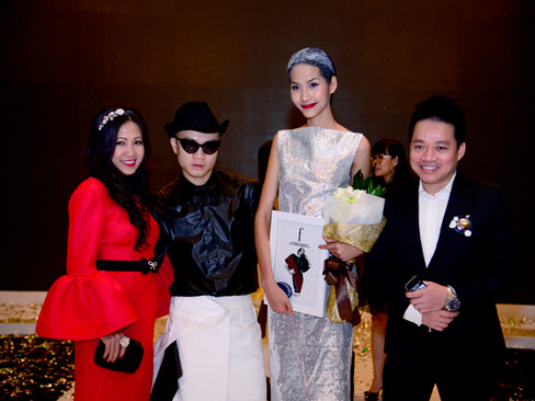| Hoàng Thùy chia sẻ niềm vui với NTK Đỗ Mạnh Cường. |