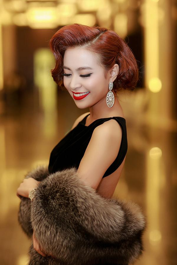 Điểm nhấn trên khuôn mặt của nữ ca sĩ là đôi môi được tô son đỏ chót vô cùng quyến rũ và sang trọng.