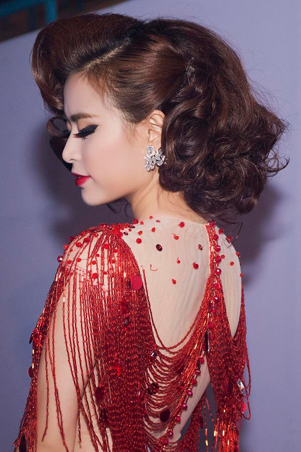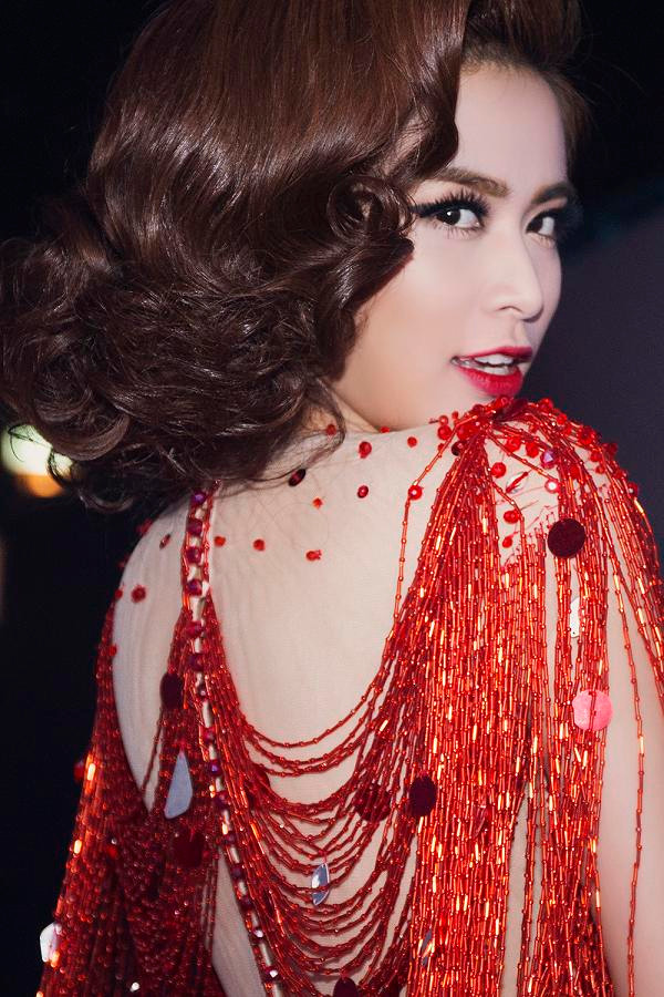 Nữ ca sĩ xuất hiện vô cùng lộng lẫy trong bộ trang phục biểu diễn màu đỏ cầu kỳ.
