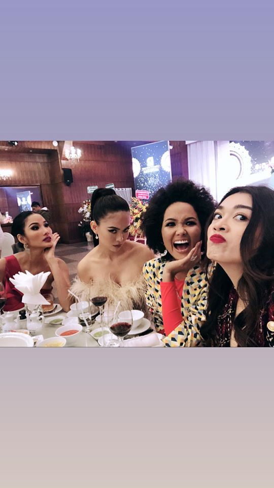 Hoàng Thuỳ hội ngộ Hoa hậu H'Hen Niê, Á hậu Mâu Thuỷ và Á hậu Lệ Hằng tại sự kiện.