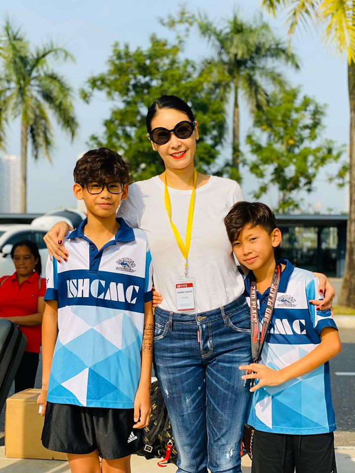Hoa hậu Hà Kiều Anh đi cổ vũ hai con trai chơi thể thao.