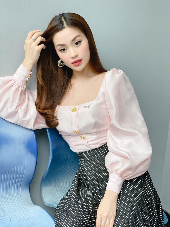 Á hậu Diễm Trang sinh đẹp trong hậu trường chương trình Toàn cảnh 24h.