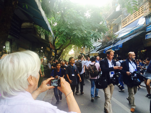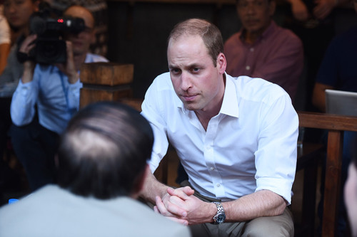Hoàng tử Anh William chiều nay đến một quán cà phê trên phố Thuốc Bắc, Hà Nội để gặp các chuyên gia y học cổ truyền, người nổi tiếng và đại diện các tổ chức phi chính phủ trong khuôn khổ chuyến thăm đầu tiên kéo dài hai ngày tới Việt Nam.