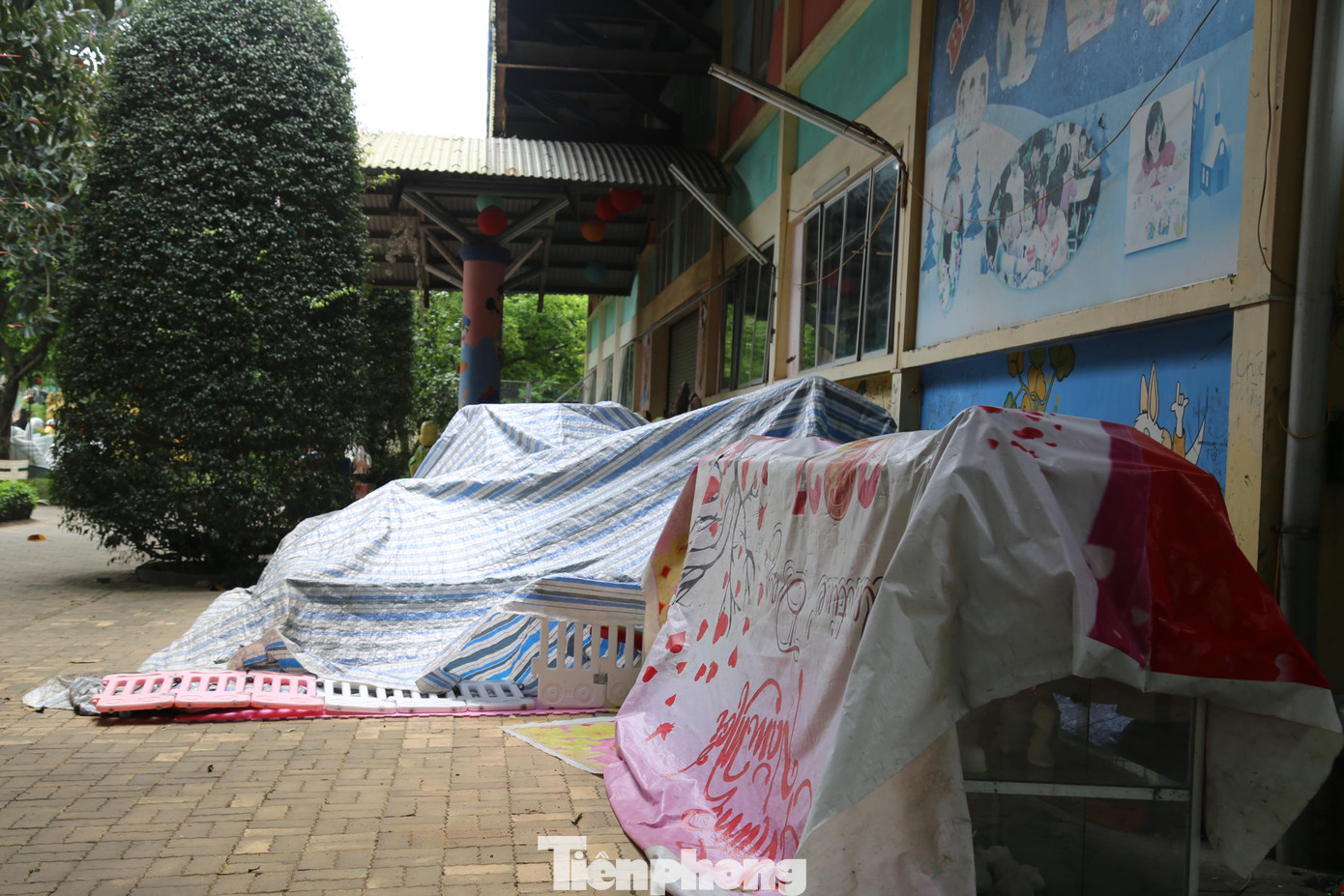 | Hệ thống rào chắn, ghế xích đu, bập bênh lâu ngày không được sử dụng bụi bặm, gỉ sét. |