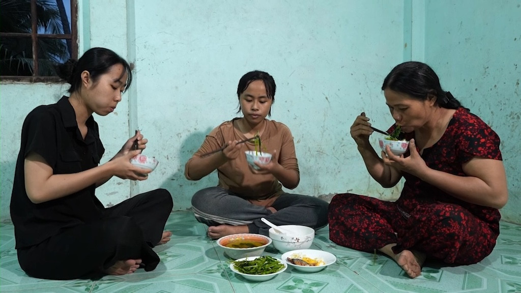 Chồng mất, chị Chi một mình gồng gánh gia đình. Chị đi thu mua dừa từ các nhà vườn rồi mang ra chợ bán lại, thu nhập khoảng 3-4 triệu đồng/ tháng. Nhưng do thời buổi khó khăn nên thu nhập từ công việc dần không còn ổn định. Để lo cho các con, chị Chi còn tranh thủ trồng thêm rau quanh nhà để bán kiếm thêm. Khi không có tiền mua đồ ăn, mấy mẹ con lại hái rau ngoài vườn luộc lên ăn qua bữa.