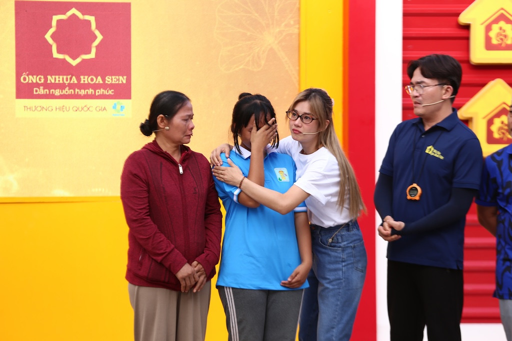 Trong đó, hoàn cảnh của em Nguyễn Minh Thư, học sinh Trường THCS Thủ Khoa Huân, TP Phan Thiết, tỉnh Bình Thuận khiến MC Đại Nghĩa và hai khách mời rất xúc động. Cha của Minh Thư qua đời năm 2018 do tai nạn giao thông. Từ đó, ngôi nhà không còn bóng dáng của người đàn ông trụ cột nữa, chỉ còn lại 3 người phụ nữ là mẹ Nguyễn Thị Diễm Chi, chị gái Nguyễn Cát Tiên và Minh Thư sống nương tựa lẫn nhau.