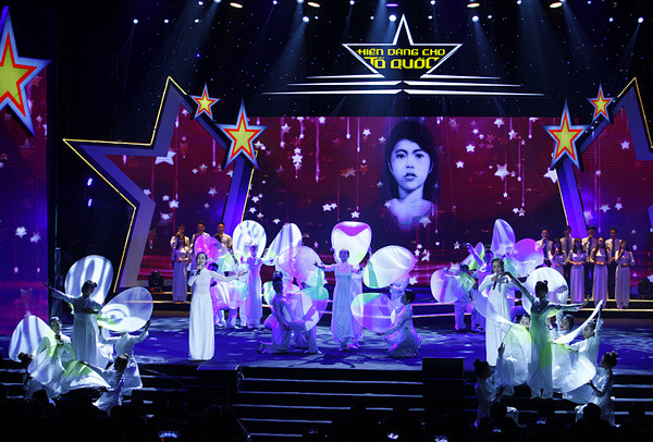 Điểm nhấn trong chương trình là ca khúc Người là niềm tin tất thắng, liên khúc Biết ơn chị Võ Thị Sáu - Cùng anh tiến quân trên đường dài và Màu hoa đỏ - Người mẹ của tôi - Miền xa thẳm... Không chỉ khơi gợi quá khứ hào hùng một thời, Hiến dâng cho Tổ quốc còn sôi động với mảng ca khúc về cuộc sống hiện đại với những con người trẻ trung, tràn đầy nhiệt huyết đang cống hiến từng ngày cho Tổ quốc, qua sự thể hiện “máu lửa” của các ca sĩ đang được yêu thích.