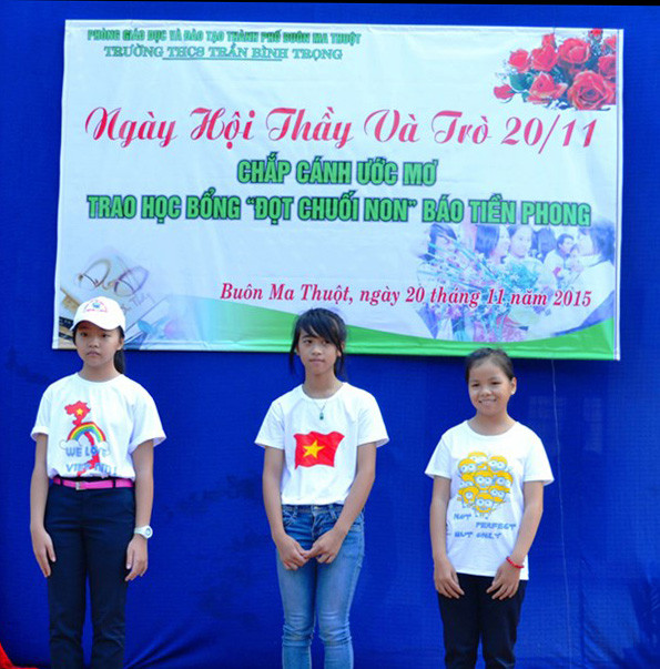7 giờ sáng, ngày 20/11/2015 sân trường THCS Trần Bình Trọng (phường Tân Hòa, cách nội thành Buôn Ma Thuột hơn 6km), đông đủ học sinh, giáo viên đã tề tựu dự lễ kỷ niệm ngày nhà giáo Việt Nam. Một bảng hiệu màu xanh nõn chuối với dòng chữ “Ngày hội thầy và trò 20/11 chắp cánh ước mơ trao học bổng “Đọt chuối non” của báo Tiền Phong” được nhà trường tự thiết kế treo ngay ngắn và trang trọng.