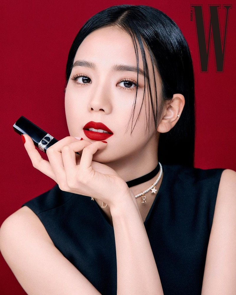 Son đỏ thường mang lại vẻ đẹp sắc sảo và cá tính, hiếm có ai đánh son đỏ mà vẫn xinh dịu dàng như Jisoo. Cô dùng thỏi son đỏ 999 đình đám của Dior.