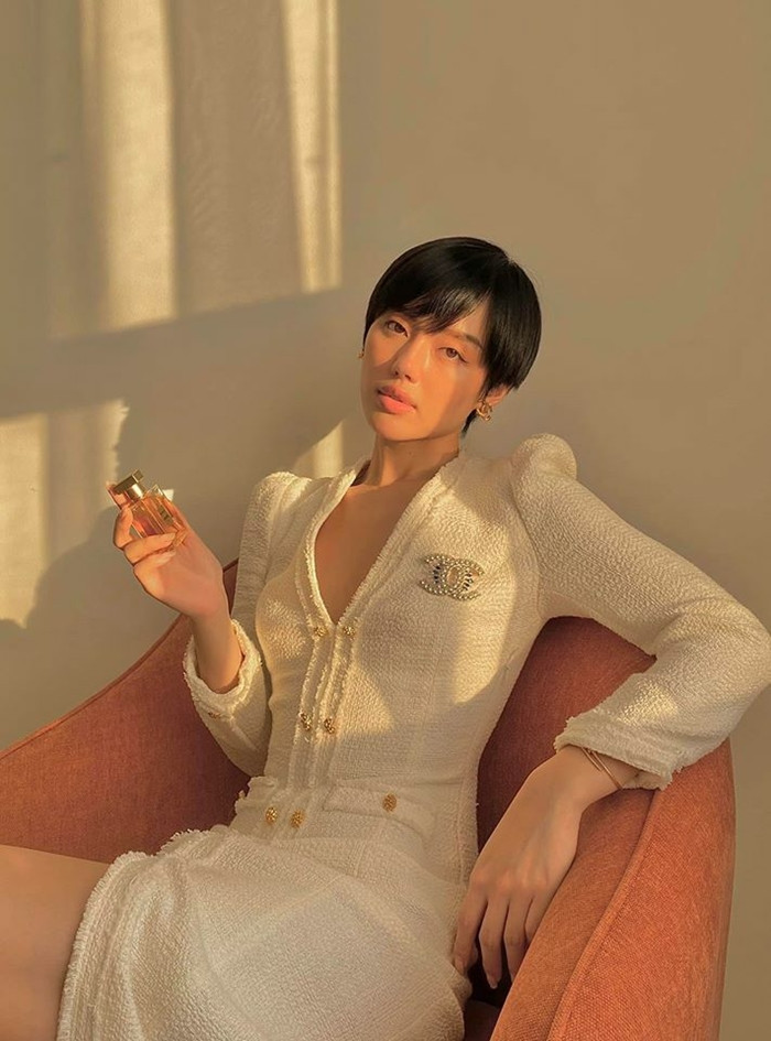 Khánh Linh từng đi dự Paris Fahion Week nên cũng phải cách ly 14 ngày. Cho dù cách ly tại nhà, cô nàng vẫn có rất nhiều hình đẹp long lanh. Chụp với ghế xô-pha đơn giản cũng có thể có bức hình đẹp.