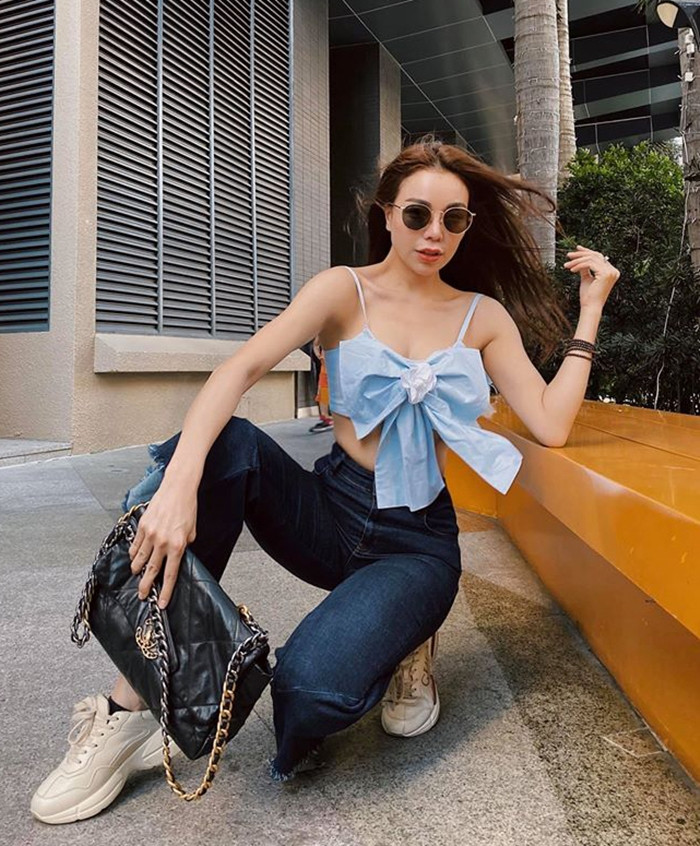 Bước xuống sân chung cư làm vài kiểu ảnh như Trà Ngọc Hằng chắc cũng không sao đâu, xong rồi nhớ đi vào nhà luôn nhé!