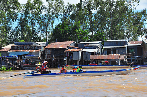 Vỏ lãi chở học sinh Em Lê Thị Kim Yến, học sinh lớp 4B, trường tiểu học B Vĩnh Hội Đông nói: “Nước đã ngập hết tuyến đường dẫn từ nhà cháu đến trường, có nơi hơn thướt nước. Những ngày đầu, cha mẹ đưa đón đến trường rất vất vả và nguy hiểm. Tuy nhiên, từ khi được nhà trường tổ chức vỏ lãi đưa cháu đến trường an toàn cha mẹ yên tâm đi làm thuê”.