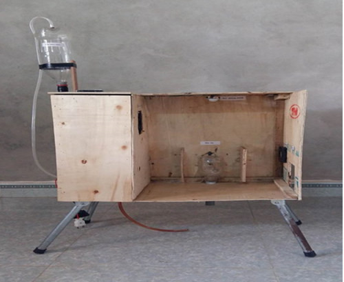 “Khi người dùng bước đến bồn cầu và sử dụng, cảm biến tiệm cận sẽ tiếp nhận thông tin và truyền về bộ xử lí. Bộ xử lý khi nhận được thông tin sẽ kích hoạt rơ-le, khởi động van điện từ 1 (van điện từ 2 đóng), nước sẽ được xả vào bồn chứa nước nhỏ, khi nước chảy vào bồn chứa nước nhỏ với một thể tích nhất định, van sẽ tự ngắt nhờ vào cảm biến nước”, Hiếu cho biết.