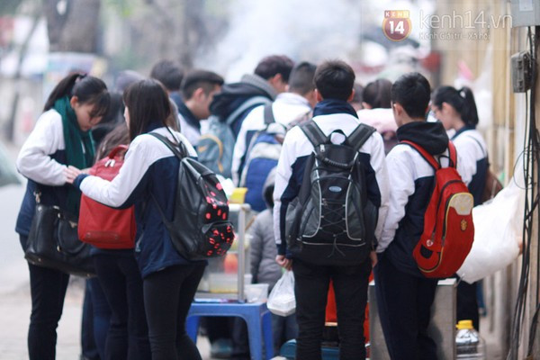 Với những ngày lạnh thế này, lựa chọn ăn sáng bằng những món ăn ấm nóng cũng là một cách khá phổ biến. Trên nhiều hàng xôi nóng, thịt xiên nướng hai bên đường, rất nhiều bạn học sinh đã tập trung khá đông để mua phục vụ nhu cầu bữa sáng của mình.