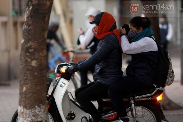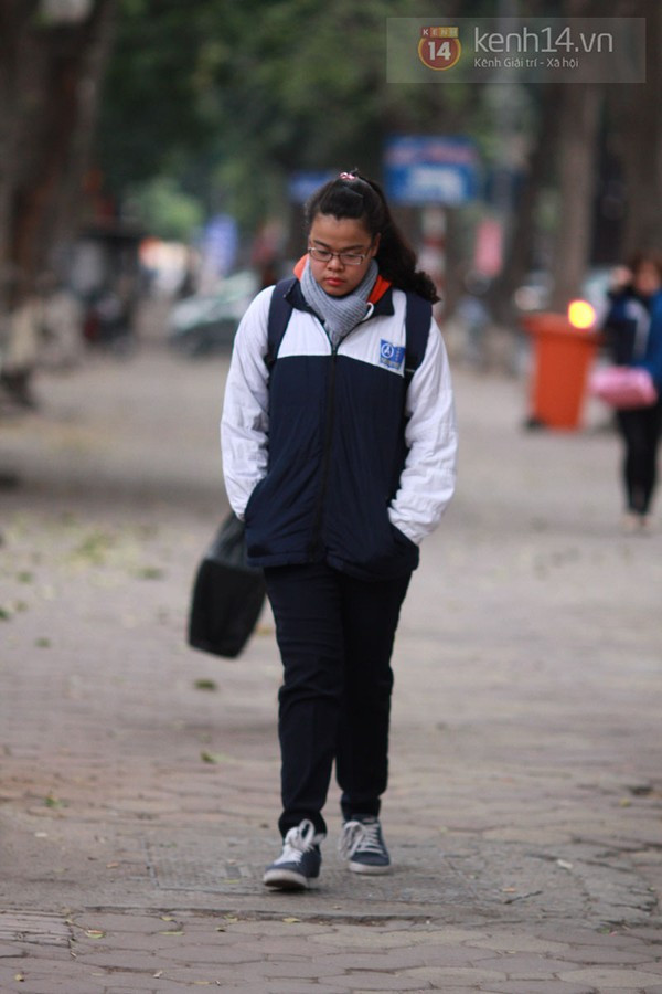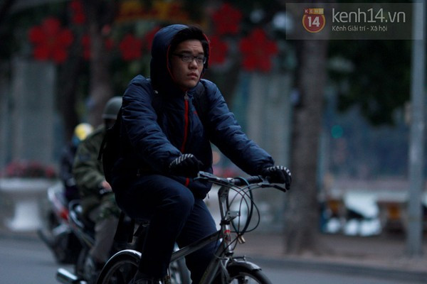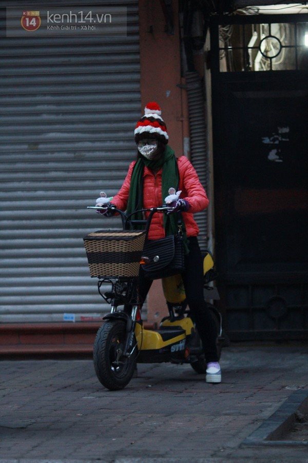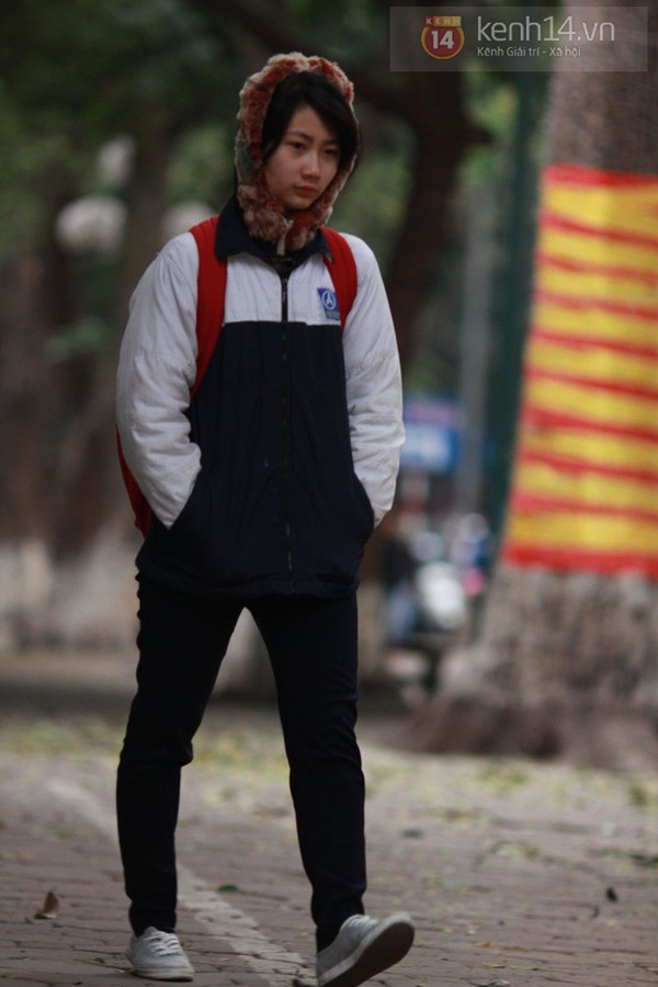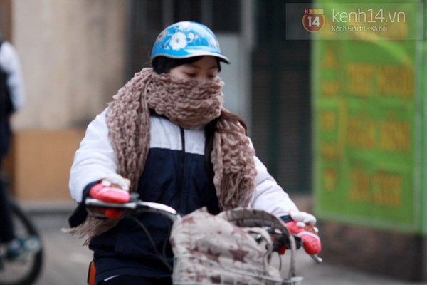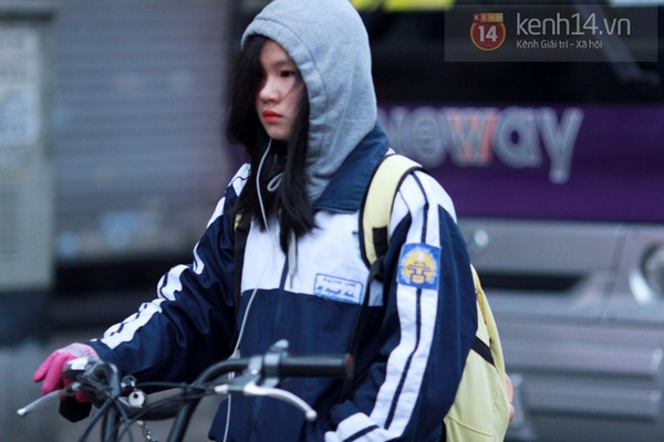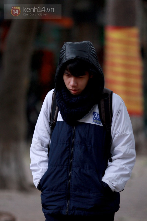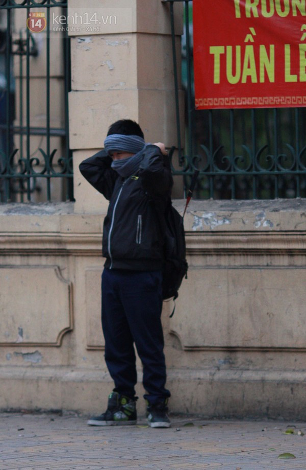 Có mặt từ sớm trên đường phố Hà Nội, chúng tôi đã ghi lại được những hình ảnh trùm kín mít từ đầu đến chân của nhiều bạn học sinh. Có vẻ như thời điểm này thì giữ ấm cơ thể là điều quan trọng nhất khi ra đường. Từ mũ len, khẩu trang, khăn quàng, găng tay, giày, tất cả những phụ kiện giữ ấm đều được tận dụng triệt để. Theo ghi nhận của chúng tôi, do trời lạnh nên nhiều trường học trong sáng nay cũng đã để cổng trường mở đến 7h30.