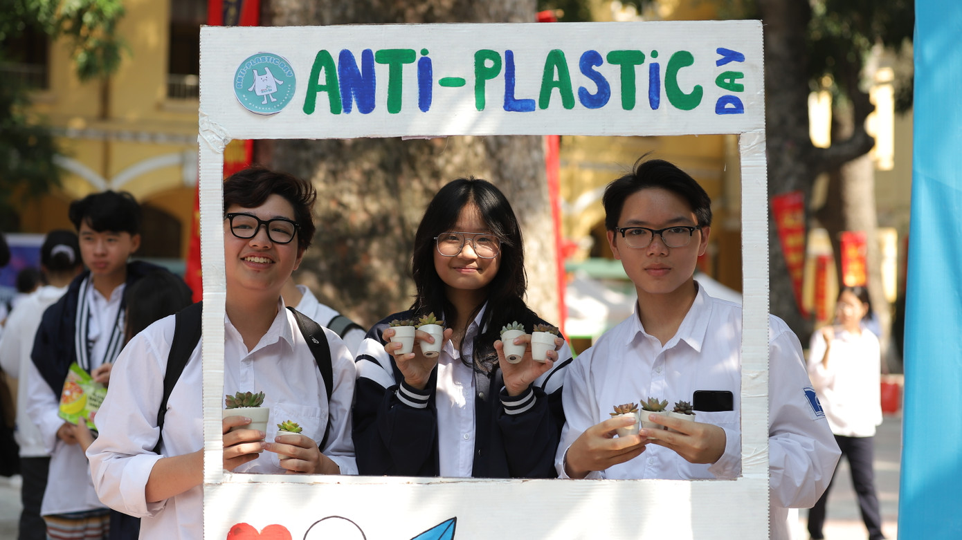 | Các bạn học sinh Hà Nội hào hứng tham gia ngày hội Anti-Plastic Day - bảo vệ môi trường |