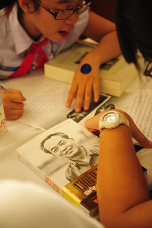 | Hàng trăm học sinh tham dự vòng loại tập trung khu vực miền Trung tại Đà Nẵng của chương trình truyền hình của VTV mang tên Chinh Phục – Đi tìm học sinh bản lĩnh và thông thái nhất Việt Nam đã viết những bức thư cảm động gửi Đại tướng Võ Nguyên Giáp. |