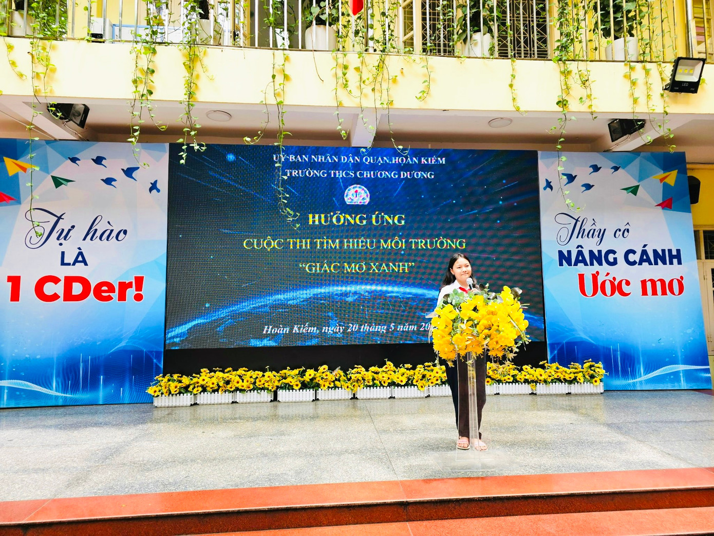 Cô Nguyễn Thị Vân Hồng, Hiệu trưởng Trường THCS Chương Dương cho biết khi nhận được thông tin có cuộc thi Giấc mơ xanh, học sinh nhà trường rất hào hứng. Bởi hoạt động bảo vệ môi trường luôn được nhà trường tuyên truyền, lên kế hoạch hằng năm cho học sinh triển khai.