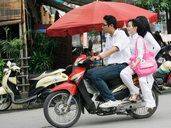 TP - Trong ngày khai giảng, bên canh những hình ảnh tươi rói của tuổi học trò, những tà áo dài trắng, những nụ cười hồn nhiên, trong trẻo vẫn còn không ít những hình ảnh chưa đẹp khi các cô cậu học trò chở 3 trên xe máy, đầu không đội mũ bảo hiểm, dàn hàng ngang ra đường