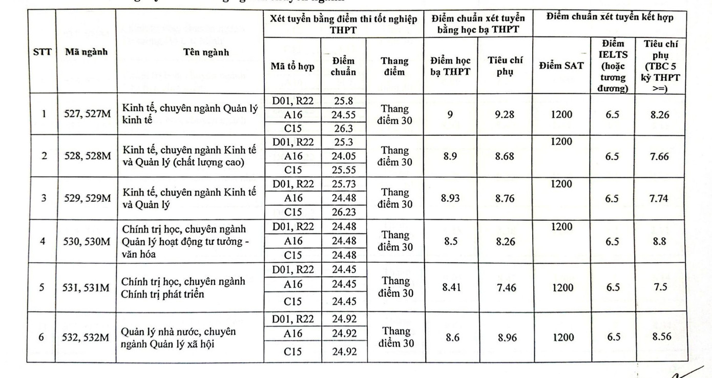 Năm nay, điểm chuẩn ngành Quan hệ công chúng chuyên nghiệp cao nhất và cao hơn năm 2022. Năm trước, ngành này điểm chuẩn đối với phương thức xét kết quả thi tốt nghiệp là 37,6/40 điểm.