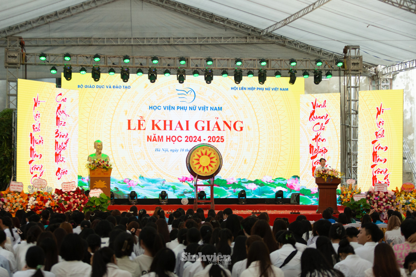 | Tân sinh viên Học viện Phụ nữ Việt Nam rạng rỡ ngày khai giảng. |