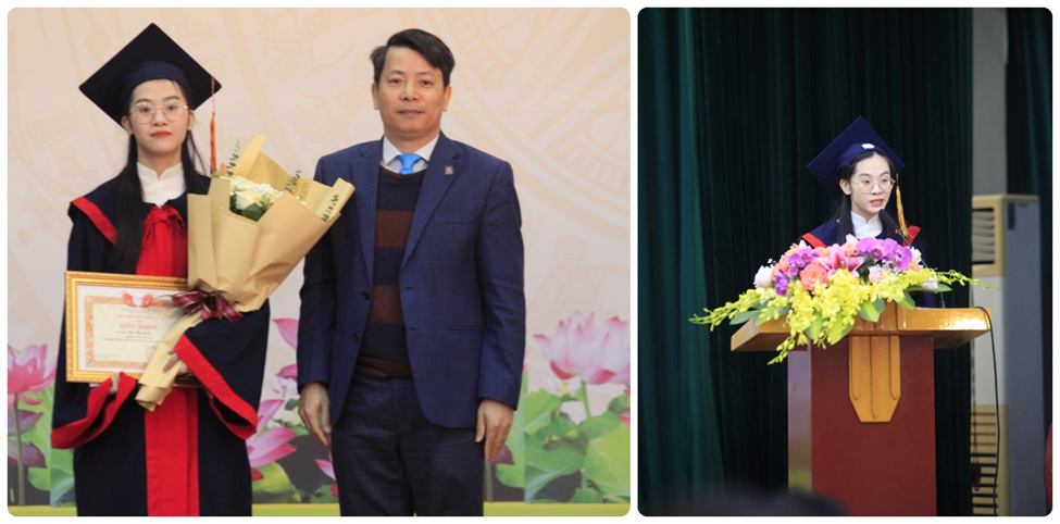 Trong niềm vui ngày tốt nghiệp, đại diện cho các tân cử nhân, sinh viên Mai Thị Lành – sinh viên K8 Giới và phát triển, Thủ khoa đầu ra của Học viện đã thay mặt cho các tân thạc sĩ, tân cử nhân phát biểu cảm tưởng. Lành gửi lời tri ân sâu sắc tới thầy cô, những người lái đò tận tụy luôn sát cánh bên các học trò trong chặng đường 4 năm học và chắc chắn là cả chặng đường sắp tới. Những kiến thức, tình cảm mà thầy cô trao cho các tân cử nhân hôm nay sẽ là hành trang cho những dự định và thành công trong tương lai của mỗi cử nhân Học viện Phụ nữ Việt Nam.