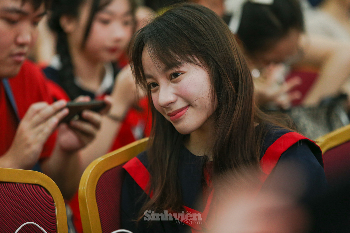 | Bạn Nguyễn Văn Nam - Sinh viên xuất sắc lớp TTĐPT-C, Khoa Truyền thông Đa phương tiện phát biểu cảm nghĩ tại lễ tốt nghiệp: "Đối với mỗi sinh viên chúng em, tốt nghiệp không chỉ là lên sân khấu nhận tấm bằng, mà quan trọng hơn là sẽ đánh dấu sự khởi đầu của giai đoạn tiếp theo. Ngày mai đây, bước vào môi trường nghề nghiệp, chúng em xin hứa sẽ tiếp tục phấn đấu không ngừng, mang kiến thức đã học, vận dụng sáng tạo vào cuộc sống để không phụ lòng mong đợi của thầy cô, xứng đáng là sinh viên của Học viện Phụ nữ Việt Nam." |