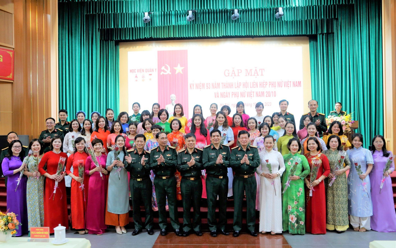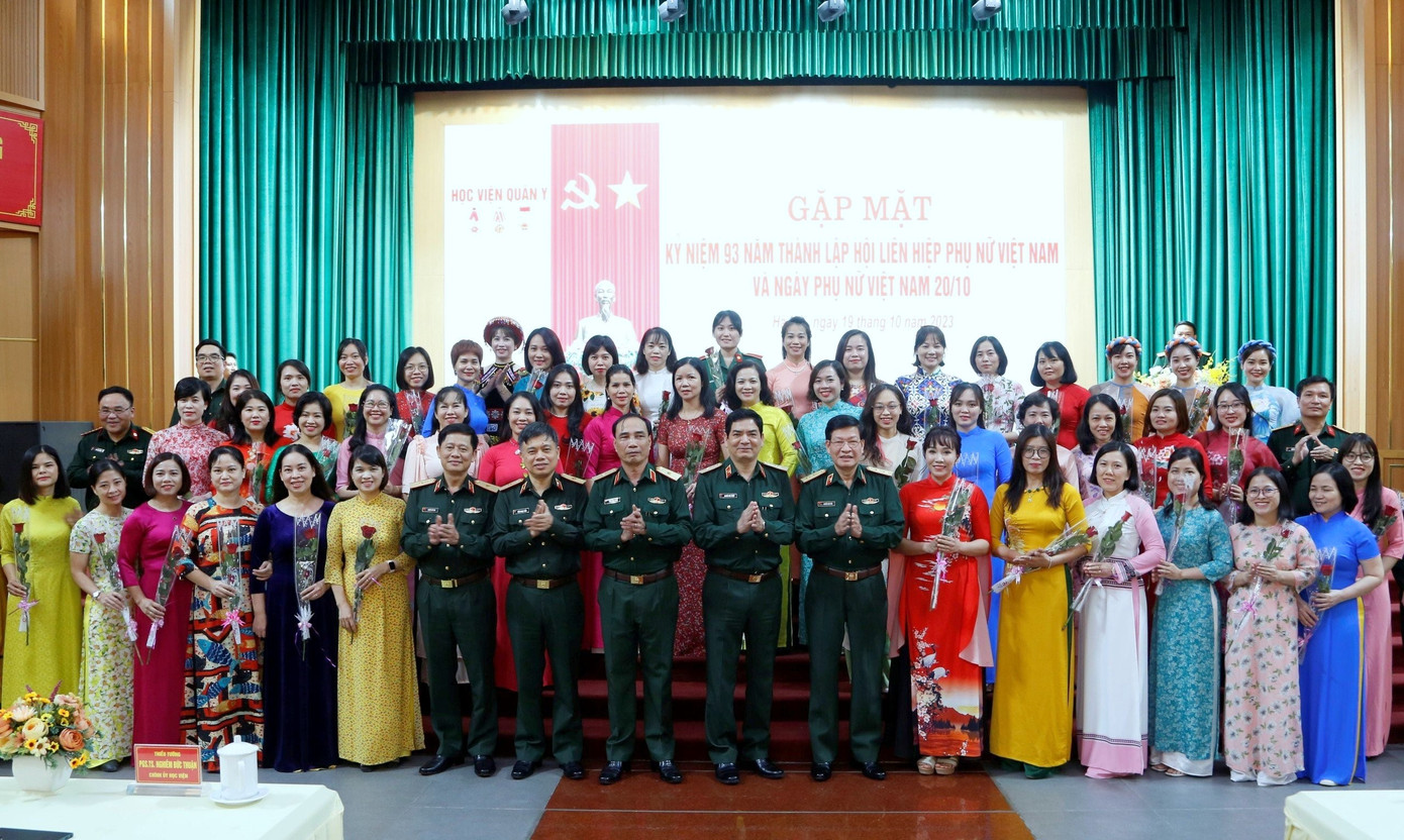 | Lãnh đạo Học viện Quân y chúc mừng các cán bộ Hội phụ nữ tiêu biểu năm 2023 của Học viện. |