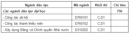 Mục tiêu đào tạo: Đào tạo cán bộ làm công tác chính trị, xã hội theo hướng đào tạo lãnh đạo trẻ, có trình độ đại học, đáp ứng nhu cầu tuyển dụng của các cơ quan Đảng, Nhà nước, Đoàn Thanh niên các cấp và các cơ quan trong hệ thống chính trị.