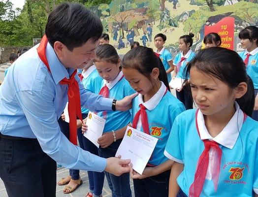 Trong hành trình về nguồn, Hội đồng Đội T.Ư đã diễn ra nhiều hoạt động ý nghĩa: Khánh thành 1 Ngôi nhà Khăn Quàng Đỏ cho em Vương Văn Thành, dân tộc Nùng, học sinh trường tiểu học Nà Luông, xã Bạch Đằng, huyện Hòa An, tỉnh Cao Bằng mồ côi cả cha lẫn mẹ. Đây là quà tặng của chương trình “Cùng nhau giúp bạn” giai đoạn I, năm 2015 do Trung tâm Hỗ trợ và Phát triển Thiếu nhi Việt Nam - Hội đồng Đội T.Ư, Học viện Anh ngữ American Academy (AMES) phối hợp tổ chức.