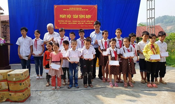 Cũng tại đây, các nhà hảo tâm trao tặng 1 chiếc ti vi 28 inch cho em Vương Văn Thành. Tặng 1 nhà khăn quàng đỏ trị giá 50 triệu đồng và 20 suất học bổng, mỗi suất trị giá 500.000 đồng, gần 1.500 chiếc áo phông, hơn 1.200 cuốn vở và gần 700 đồ dùng học tập các loại (của các em học sinh trường THCS Ngọc Thụy, quận Long Biên, Hà Nội khuyên góp), bánh kẹo và thuốc cho các em học sinh trường tiểu học Nà Luông, huyện Hòa An, tỉnh Cao Bằng.
