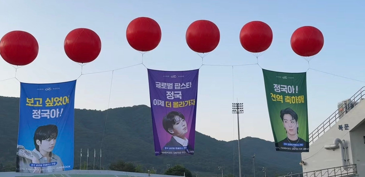 Trước đó, Bighit Music khuyên người hâm mộ không nên đến địa điểm tổ chức lễ xuất ngũ nhằm tránh gây ùn tắc và đảm bảo an toàn cho mọi người. Thay vào đó, các bóng bay cổ vũ đã xuất hiện xung quanh khu vực Yeoncheon từ sáng sớm để chào mừng hội em út BTS "về nhà".