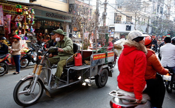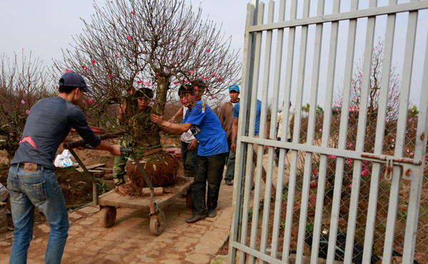 Lao động tự do đắt khách với dịch vụ vận chuyển những cây đào khủng