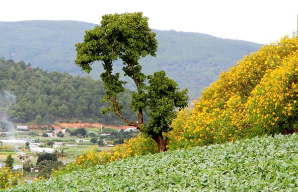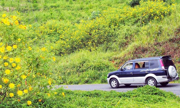 Mùa này, nhiều thánh phượt cho rằng đèo D'ran (từ huyện Đơn Dương lên thành phố Đà Lạt) là đường đèo đẹp nhất, không chỉ bởi rừng thông bạt ngàn, sương mù lãng đãng mà còn vì những sóng hoa vàng uốn lượn ven đường, trên triền núi, dưới thung lũng…