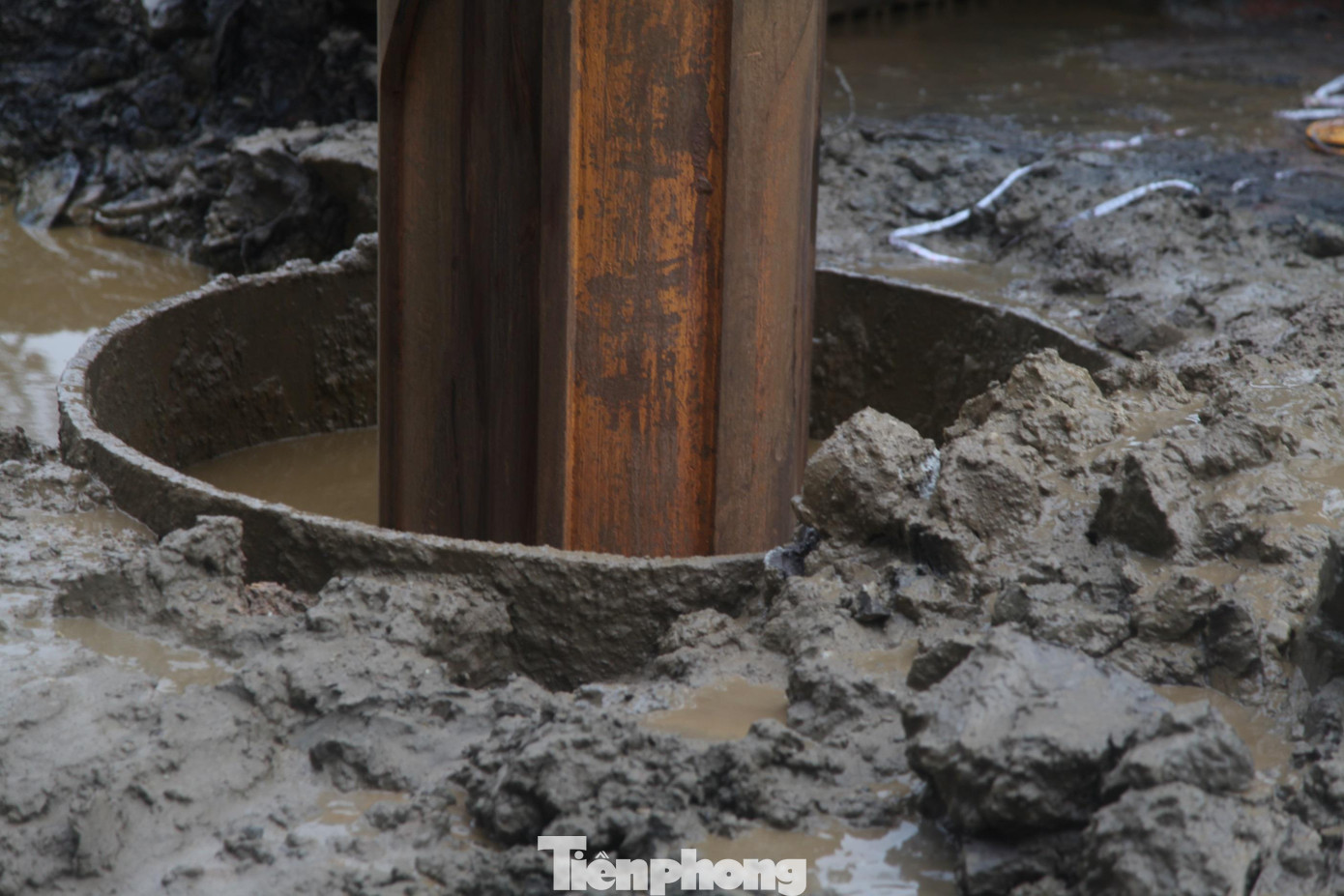 | Công nhân khoan lỗ để xây dựng trụ cầu Như Nguyệt |