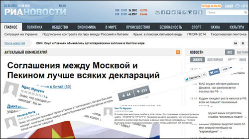 Trước đó, hãng tin RIA Novosti, một trong những hãng thông tấn lớn nhất nước Nga đã cho đăng bài báo “Những thỏa thuận giữa Moskva và Bắc Kinh tốt hơn mọi thông báo” của tác giả Dmitri Kosyrev.