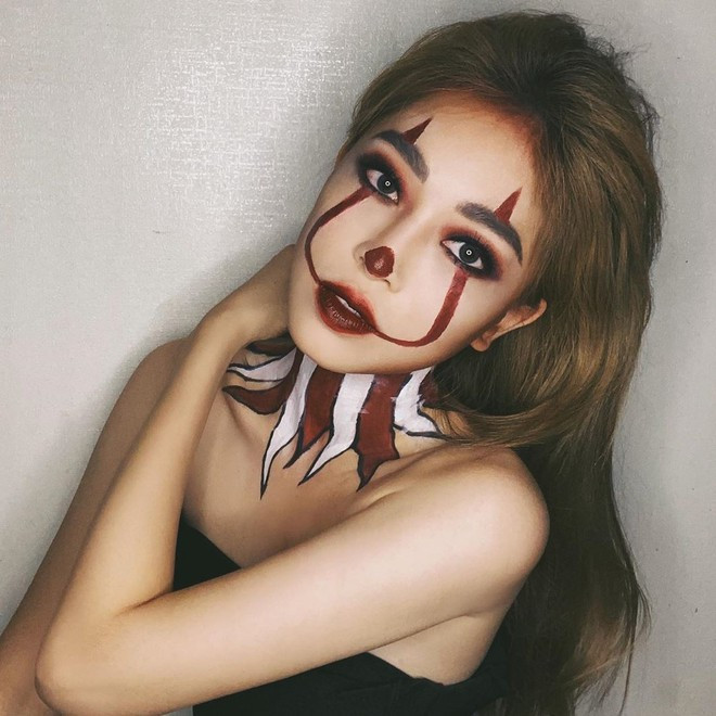 Linn Nguyễn (Nguyễn Thị Mỹ Linh, sinh năm 1992) - nữ PT nóng bỏng nổi tiếng mạng xã hội - cũng khoe màn hóa trang ấn tượng trong ngày Hội ma. Cô cũng chia sẻ việc hóa trang giúp bản thân tự tin hơn. Rời gia đình tại Mỹ để về Việt Nam phát triển sự nghiệp, Linn Nguyễn hiện là gương mặt đại diện cho nhiều nhãn hàng, thường xuyên có mặt ở các sự kiện liên quan đến làm đẹp. Ảnh chụp màn hình.