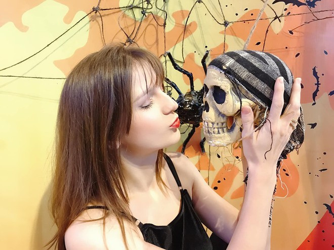 DJ đến từ Ukraine Alexandra Rud (26 tuổi) thích thú khi được trải nghiệm không khí ngày hội hóa trang ở Việt Nam. Cô đăng tải những bức ảnh cùng bạn bè thăm thú các địa điểm được trang trí độc đáo trong dịp này. Ảnh: FBNV.