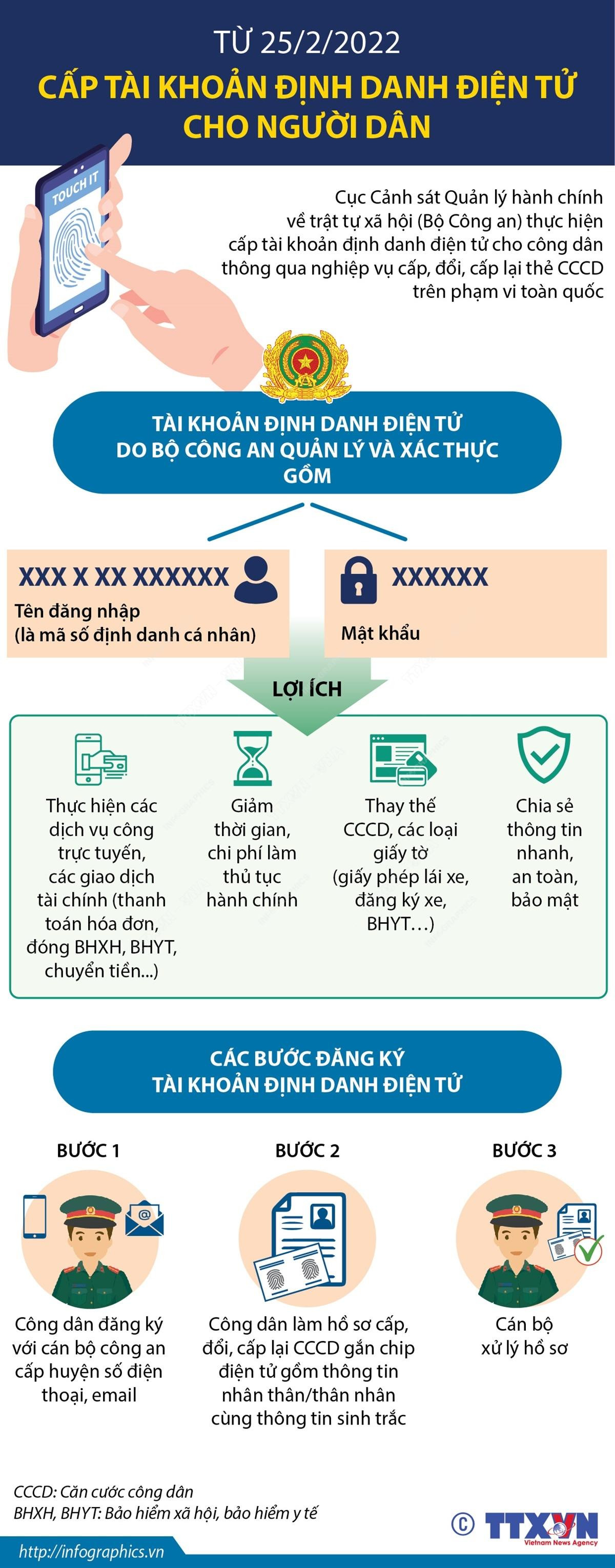 Từ hôm nay (25/2), Cục Cảnh sát Quản lý hành chính về trật tự xã hội (Bộ Công an) bắt đầu tiến hành cấp tài khoản định danh điện tử cho công dân trên phạm vi toàn quốc.