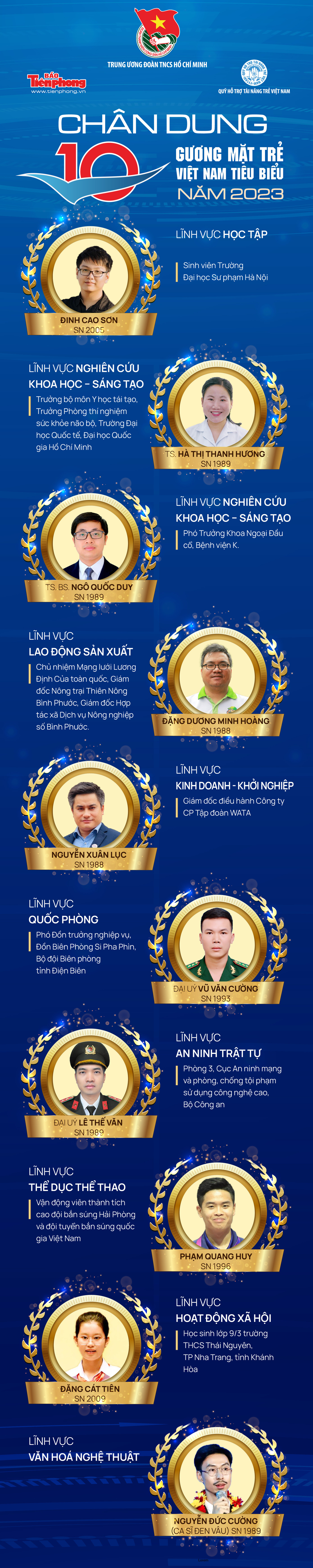 Các Gương mặt trẻ Việt Nam tiêu biểu và triển vọng năm 2023 là những tấm gương điển hình, với bảng thành tích ấn tượng, truyền cảm hứng mạnh mẽ.