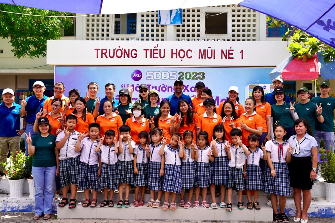 Luôn lan tỏa nhận thức bảo vệ môi trường và các giá trị sẻ chia, các nhân viên của Công ty P&G khi tham gia chương trình còn hướng dẫn và trao đổi kiến thức về môi trường bền vững thông qua hoạt động đầy thiết thực cùng các em học sinh, thu đổi vỏ chai nhựa không sử dụng, pin cũ hay vẽ tranh tường với thông điệp xanh, cùng trồng cây trang trí hành lang lớp học. Chỉ trong buổi sáng 15/6, dự án cộng đồng “Môi trường xanh, nâng cánh ước mơ” đã có gần 1.000 em học sinh trường Tiểu học Mũi Né 1 hào hứng tham gia.