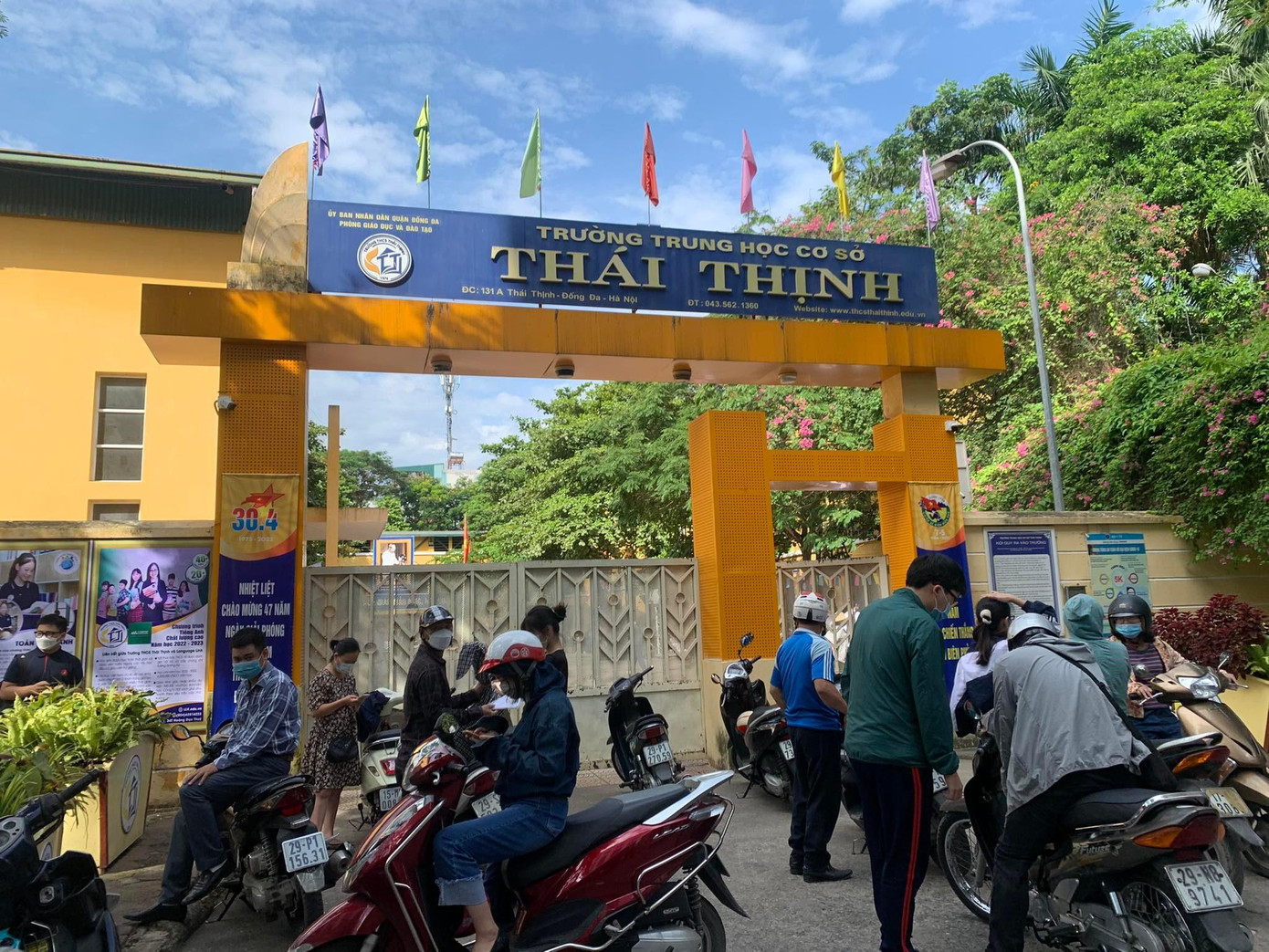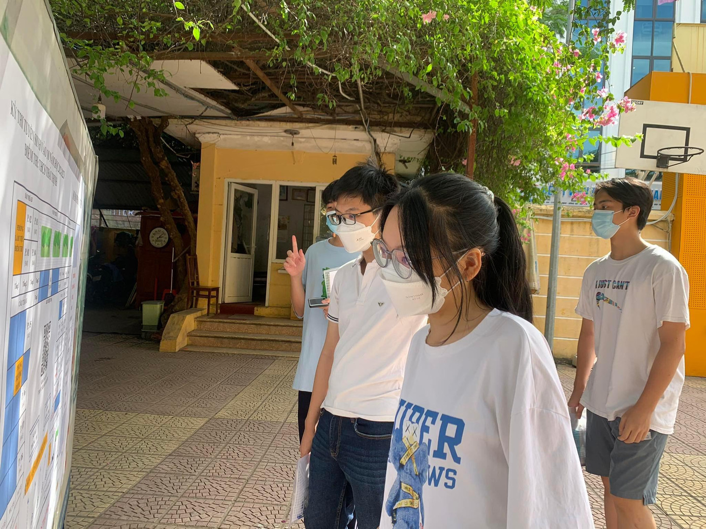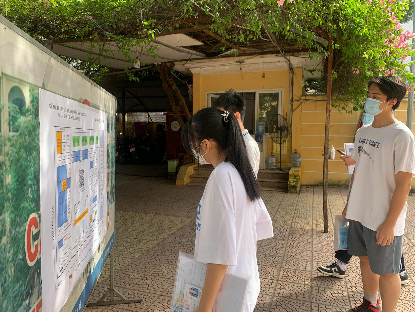 Dù phải từ 9h, thí sinh mới cần có mặt đầy đủ tại phòng thi để cán bộ coi thi ghi số báo danh của thí sinh lên bàn, hướng dẫn thí sinh xuất trình phiếu báo thi tuyển sinh vào lớp 10 THPT năm học 2022-2023 (có dán ảnh học sinh và đóng dấu giáp lai) hoặc căn cước công dân. Tuy nhiên, từ 8h sáng, tại nhiều điểm trường tại Hà Nội như trường THCS Thái Thịnh, THPT Việt Đức,...học sinh đã đến rất sớm để đợi vào làm thủ tục dự thi. Nhiều thí sinh trong lúc đợi chờ mang sách ra học.