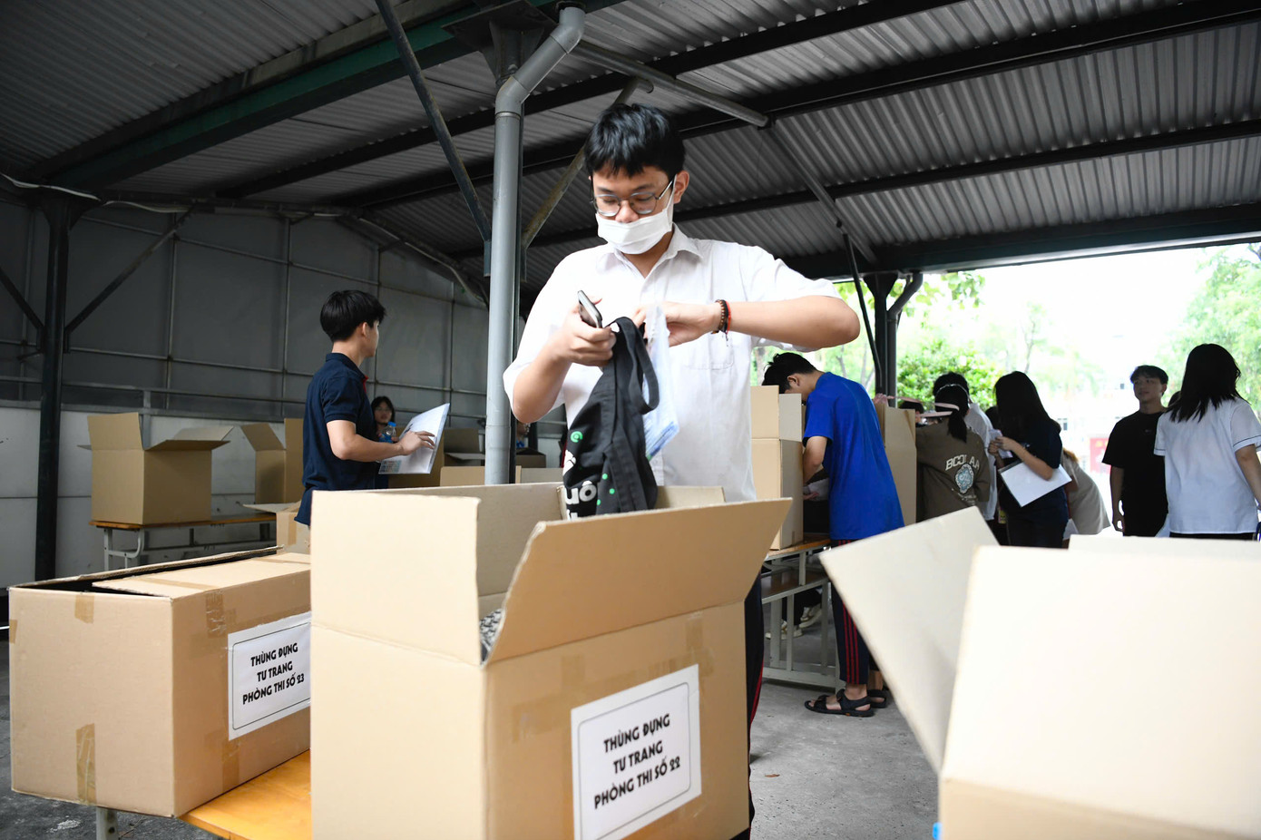 | Các điểm thi chu đáo, chuẩn bị bình nước, cốc uống nước đặt ở hành lang, trước cửa phòng thi để thí sinh sử dụng. Đồ đạc tư trang được thanh niên tình nguyện hướng dẫn gửi ở trong các hộp cách xa phòng thi. Mỗi phòng thi là một thùng cát tông để tránh sự nhầm lẫn. Đặc biệt, thí sinh mang điện thoại vào khu vực thi, được chuẩn bị phong bì để các em có thể để vào và ghi họ tên, tránh trường hợp lấy nhầm của nhau. |