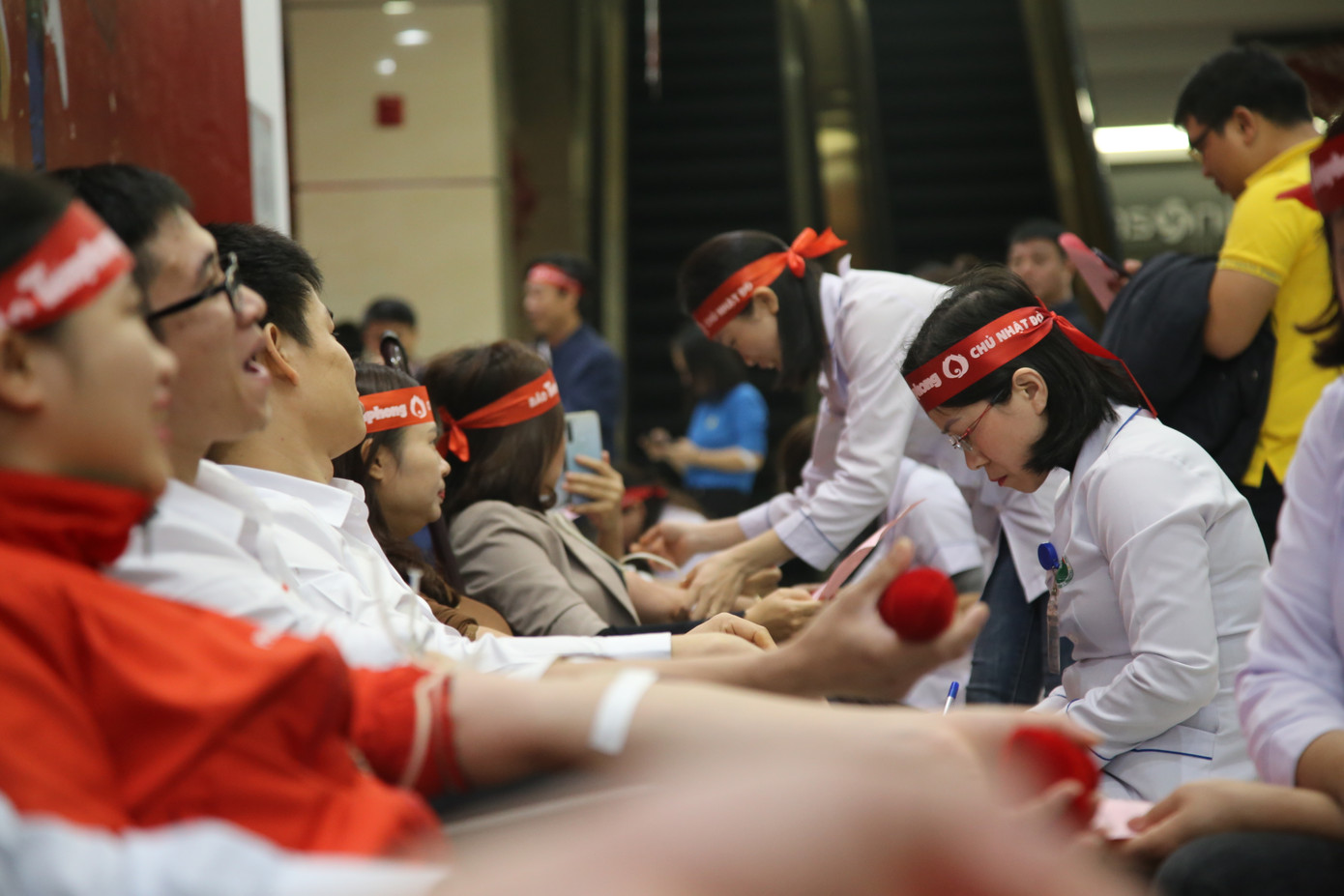 Từ 7h sáng, có hơn 1.500 người gồm: đoàn viên, thanh niên, bạn trẻ, công chức, viên chức tập trung đến hiến máu tình nguyện trong ngày hội Chủ nhật Đỏ.